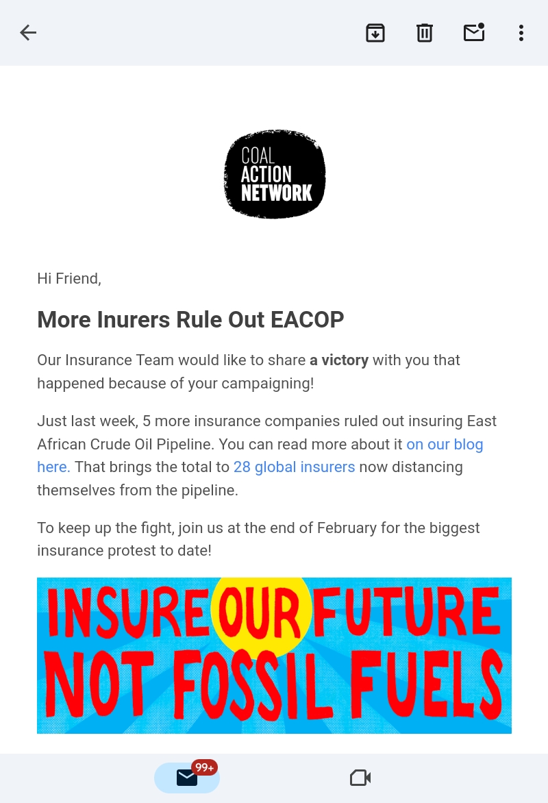 Throughout 2020, and as you could see above, also in 2021, I have continued to receive messages of success, from the company Sephora banning mink fur from its false eye lashes to the Banks Group being stopped from starting a new opencast coal mine in County Durham, UK. Yes, I’ve sent a few e-mails about some of that planned mining activity in the north of England.
