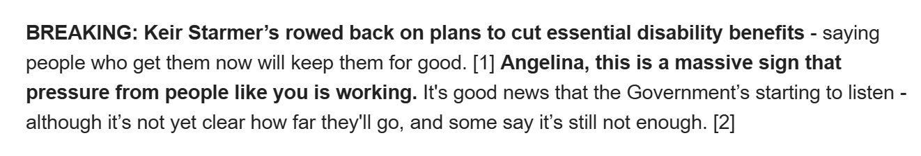 19 September 2025, from 38 Degrees: