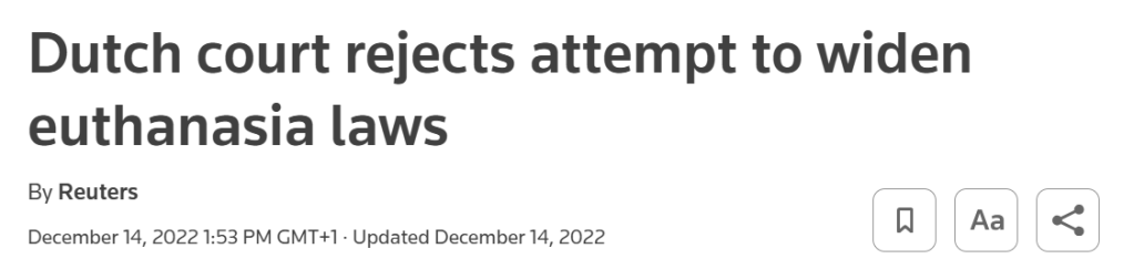 This was in a country where a political party had just submitted a (proposal for a) bill that if successful would have allowed euthanasia for no other reason than a person’s advanced age.