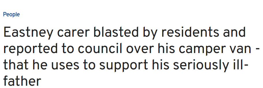 “Now the part-time worker is calling for more community compassion, after both he and his mother were berated over his parking, despite Tony having a Blue Badge and parking permits for his camper van, his work van, and his personal cars.”