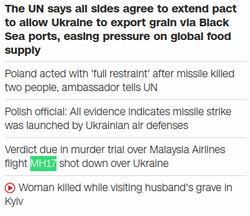 The CNN website lists the news about the pending verdict on its front page. The sites of the BBC and the Guardian don’t seem to mention it at all. The Guardian has written about it extensively in the past: https://www.google.co.uk/search?as_q=mh17&as_epq=&as_oq=&as_eq=&as_nlo=&as_nhi=&lr=&cr=&as_qdr=all&as_sitesearch=www.theguardian.com&as_occt=any&safe=images&as_filetype=&tbs=#mmc=1 The BBC does have an item about the pending verdict on its site but you have to search on “MH17” to find it: https://www.bbc.co.uk/news/world-europe-63637625