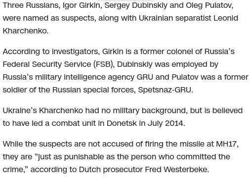 https://www.theguardian.com/world/2022/nov/17/three-men-found-guilty-of-murdering-298-people-in-flight-mh17-bombing (Is “firing a missile” or “shooting down” the same as “bombing”? That’s the writer in me asking that.)