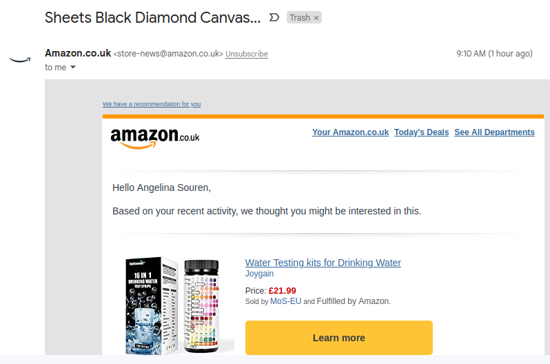 And that’s why Amazon just sent me an e-mail about stationery (that is suitable for printing business cards on) that, by contrast, contained… water quality test strips.
