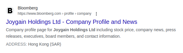 (Joygain is based in Hong Kong, indeed, but there may be more companies or brands with the name name.)
