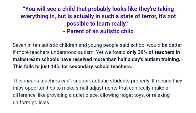 Read the report and find out what is needed: https://www.autism.org.uk/what-we-do/news/education-report-2023