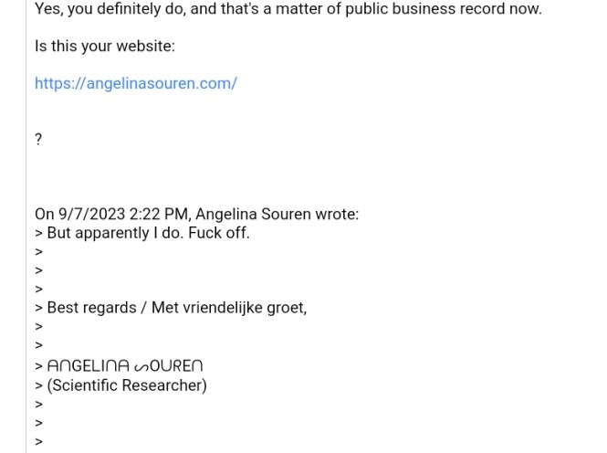 Some weeks ago, I also received an e-mail, though, that said that I deserved hate mail and that something I supposedly did was “part of the public business record” but I have no idea what that is even supposed to mean, let alone what I was supposed to have done. It was about something on this website, apparently. The email looked spoofed, supposedly came from a book review website for which I reviewed one book about the future of construction and energy, something like that.