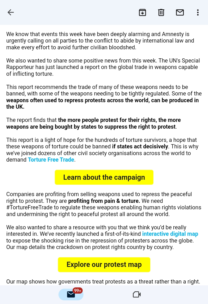 Later today, amnesty international sent this. Ouch.