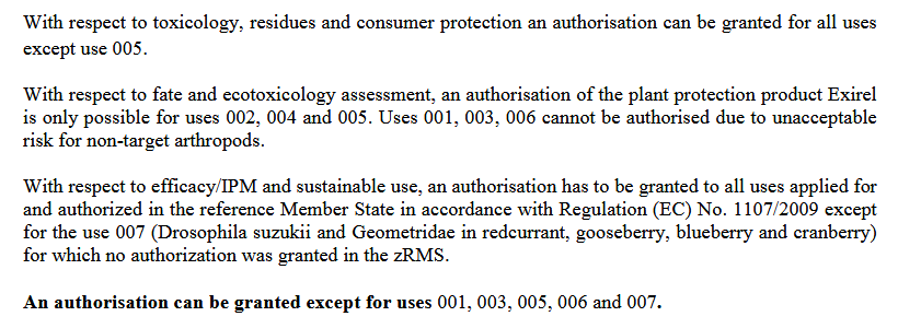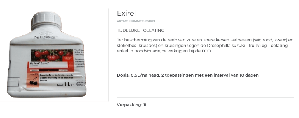 In other words, Exirel cannot be freely used in Belgium either, if I can trust the information on that website. An emergency exemption can be applied for, it says.