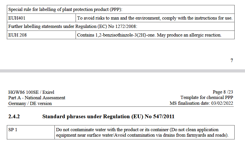 In other words, Exirel cannot be freely used in Belgium either, if I can trust the information on that website. An emergency exemption can be applied for, it says.