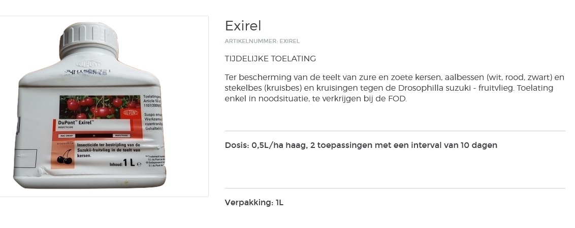 This morning at 04:45 BST, the Dutch version of the BBC – it’s called NOS – published an article in which Dutch cherry growers lament about no longer being allowed to use the insecticides Tracer and Exirel to combat Drosophila suzukii.