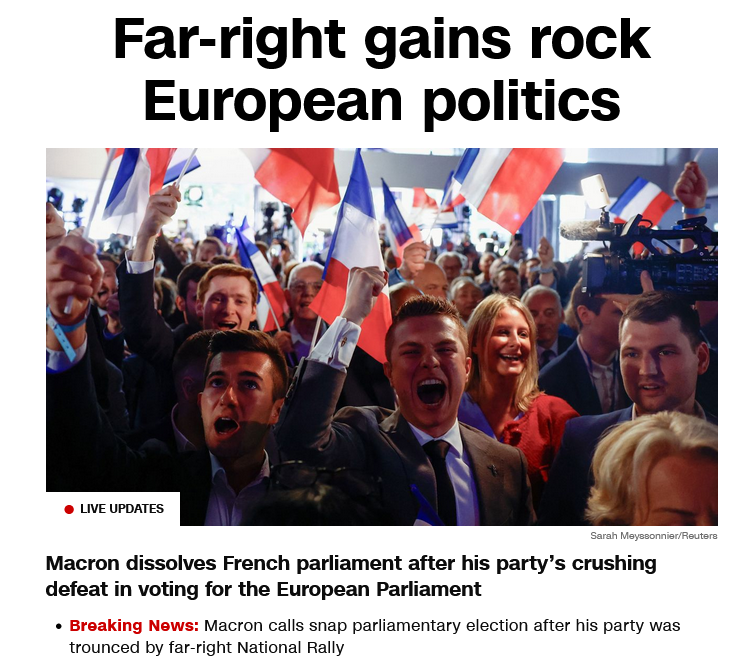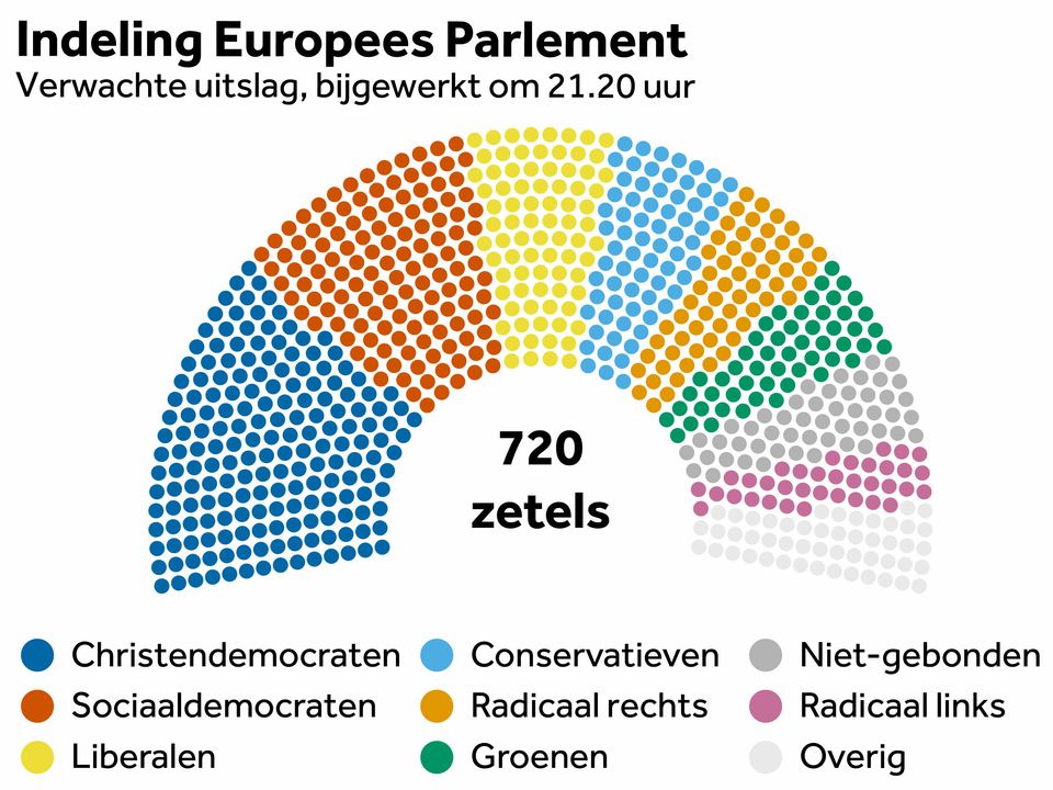 Dutch news: “EU Parliament shifts a little to the right but there are no big changes”.