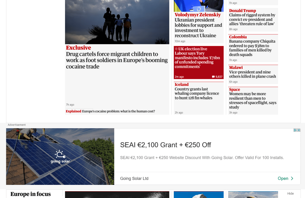 Here’s another one. That too is in Ireland as you can see in the screenshot of what I saw when I clicked on it. And the one under that is Irish too. I get that on websites such as The Guardian and CNN too.