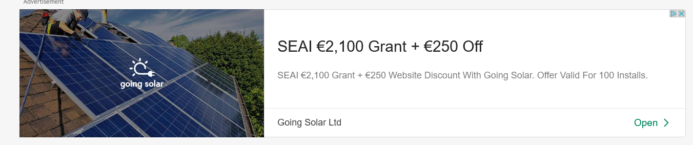 The add for solar energy in Ireland is now near the top of the page; all the other ads are for the design studio.