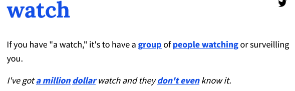 13 June 2024, 11:46 to 12:45: I also sometimes get bombarded with things to do with a watch or with time. I just checked what watch means in urban slang and found this. Related or not, I don’t know.