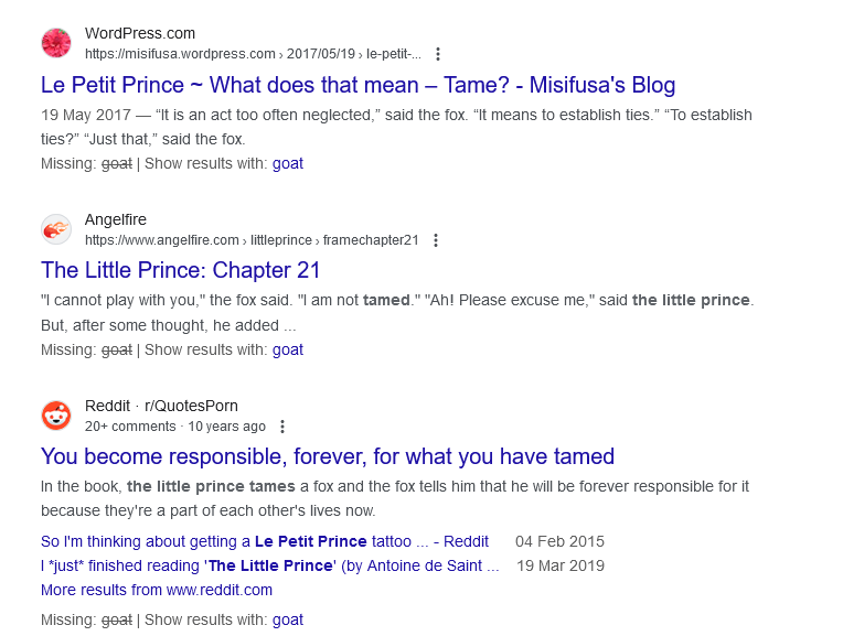 Yesterday, I suddenly lost internet access again and it took me about half an hour to reboot the computer. Both my phone and my tablet were way too warm. (For those who don’t know that, equipment getting unusually warm can be a sign of hacking activity.) The timing and its supposed effects were “interesting”; that is, what happened and what he possibly tried to suggest was interesting. He’s still doing his best to hang on to the idea of total control of me and my life, it seems, with me the rabbit (fox?) in his electronic cage. He can’t help it. I’m like the goat fox in Le petit prince to him, I suppose. He’s called the book magic.