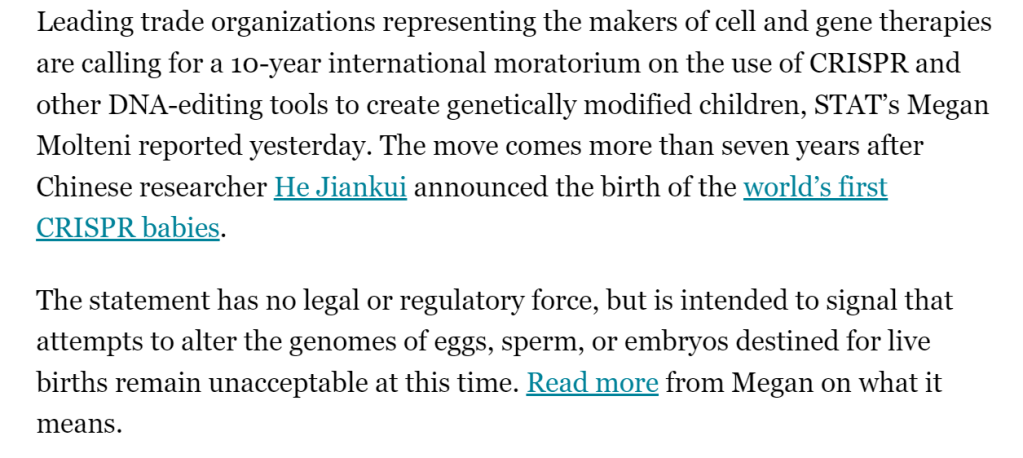 Big news: “Let’s revisit genetically modified babies in a decade, scientists say”