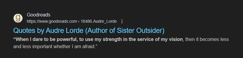It’s like who was it, Audre Lorde, wrote, I suppose even though it may sound arrogant when I say it. No, not Audre Lorde. Hansberry. Lorraine Hansberry.