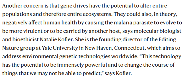 Genetic technologies can have side effects that are not necessarily instantly clear. An example could be that the changes that Dr He introduced in a pair of human twins in China to make them immune to HIV could also have resulted in “off-target” changes and scientists are largely still in the dark about this. (Natural breeding does not have the potential for unintended changes that CRISPR still has.)