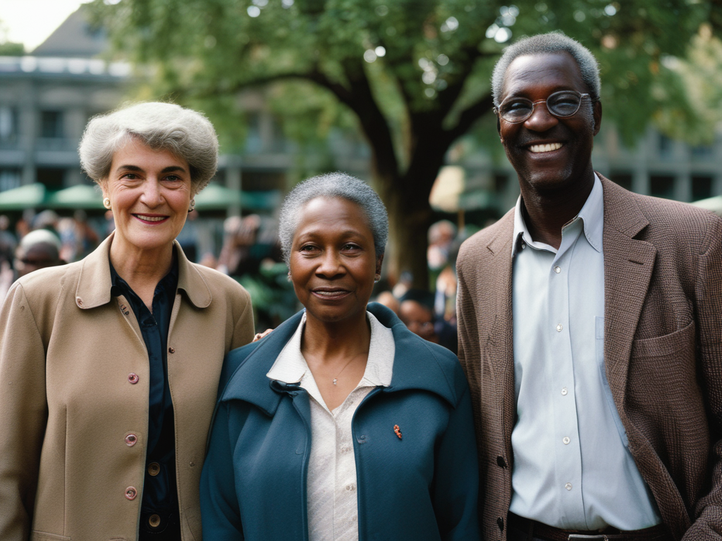 Image of an intelligent older woman and man and a dark-skinned person (generated by ai)