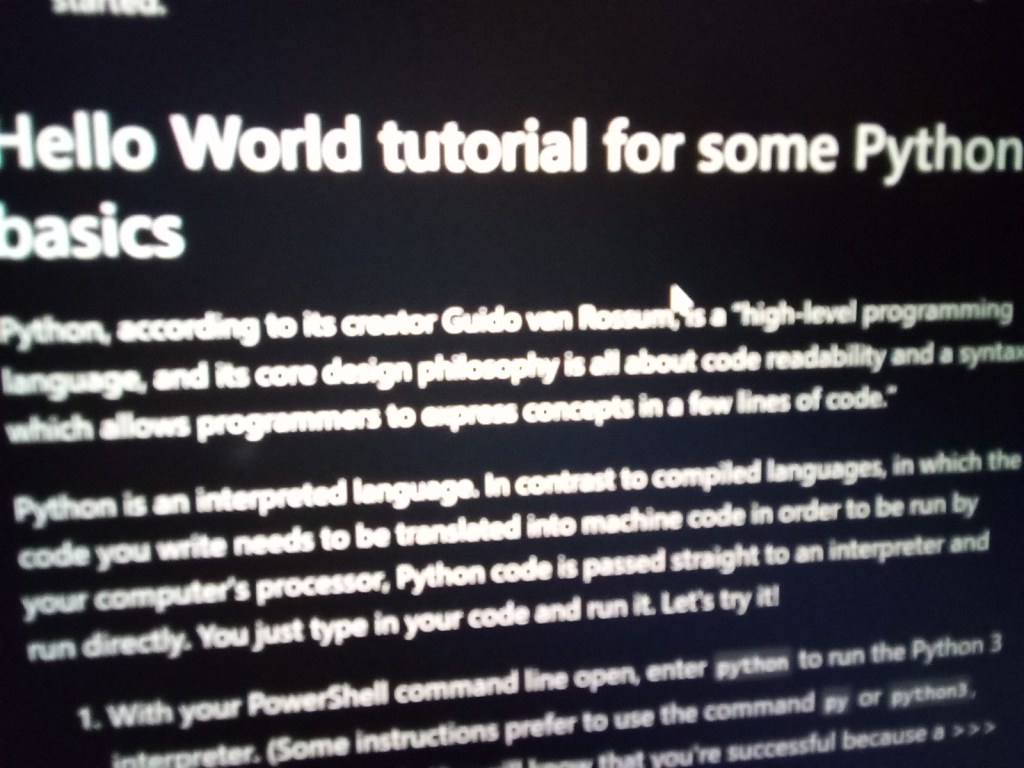 Its very intuitive, so far. I’ve done a tiny bit of Basic without computer and a tiny bit of UNIX with computer and a tiny bit of Turbo Pascal with computer, all a few millennia ago, and tons of HTML in notepad and a tiny bit of JavaScript and a lot of DOS and a tiny bit of its predecessor and a tiny bit of a statistics suite (geochemical data analysis, concerning p,T indicators in, I think, pyroxenes) of which I don’t remember the name but that was (probably) before Windows (in 1988 or thereabouts) and forced me to let the computer run and stick a note on it telling people not to switch it off pretty please because my program was running overnight.