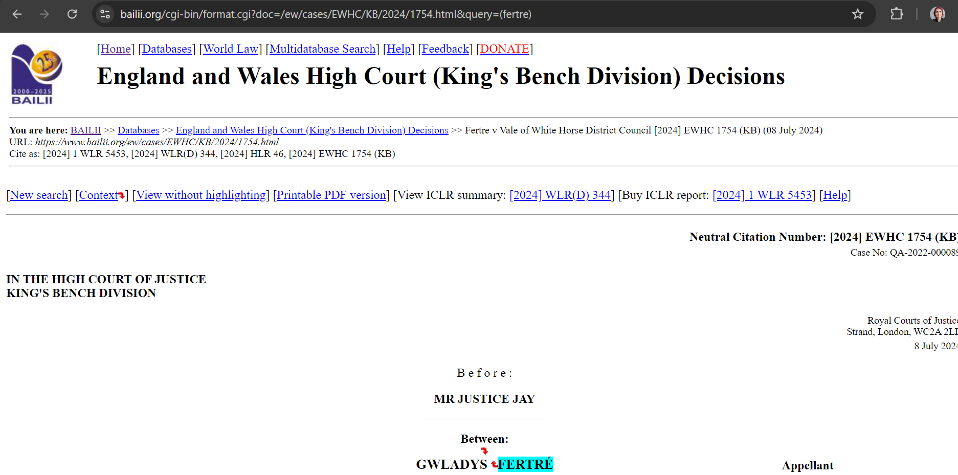 This is interesting, as Ms Fertré may not be eligible for support in her native country either as she is in the UK, after all!