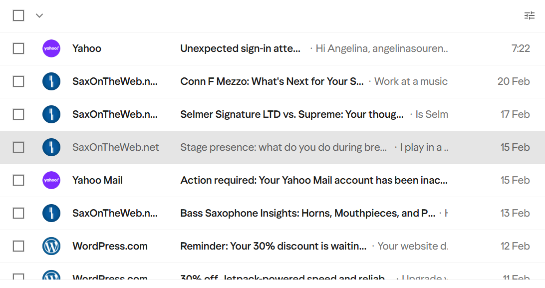 I’m suddenly getting lots of emails from the forum SaxOnTheWeb.net. Haven’t had a saxophone in years and hadn’t had email from this forum in many years either.