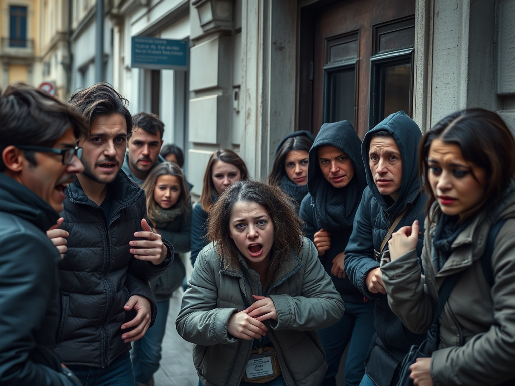 Ik moet hier helaas ook uit afleiden dat ik inderdaad in de gaten werd gehouden terwijl men in gesprek was met deze dame en dat men keek of ik mijn mobiel pakte – wat ik dus had gemaild dat ik zou doen als een en ander uit de hand dreigde te lopen. De man die meteen op me afliep – niet de man die achteraan staat – is de persoon die ik hierboven beschreef als licht geobsedeerd met me. Die indruk klopte dus.