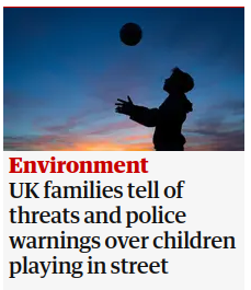 The following too is something that is so vile, it’s hard to accept that this is not some kind of prank article. Children playing outdoors being considered an antisocial nuisance? We owe that to Tony Blair, by the way, and his bonkers class ideas. Labour is at times more Tory than the Tories.