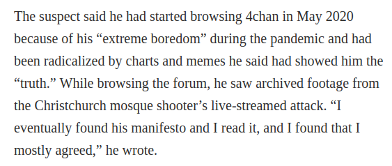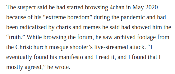 “The Washington DC shooting was the most recent to spawn out of the extremist culture of unregulated ‘chan’ message boards”