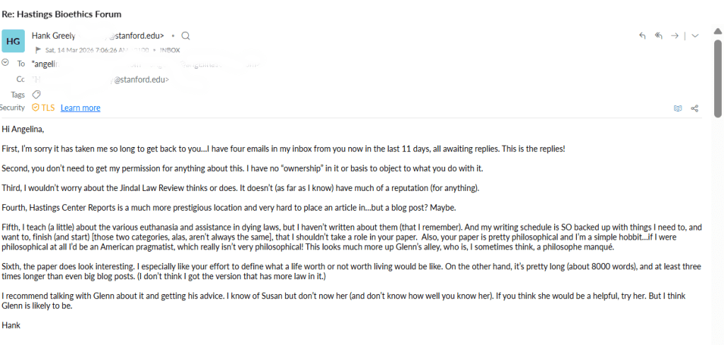 Meanwhile been advised by Hank Greely not to worry about anything the Jindal Global Law Review does or says. I was not surprised to hear that. In the natural and physical sciences, it is customary to submit a comment on someone else’s paper to the journal in which the original paper appeared; this is why I submitted my comment to JGLR.